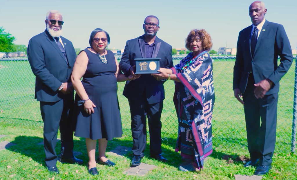 Rodney F Byrd Funeral Directors, along with representatives from the Center for the Healing of Racism, Friends of Sugarland 95, and World Colonization Memorial, carried a wooden urn filled with soil that is believed to still contain the sweat, tears, and blood of enslaved Africans who died on the Sugarland plantation in Texas.
